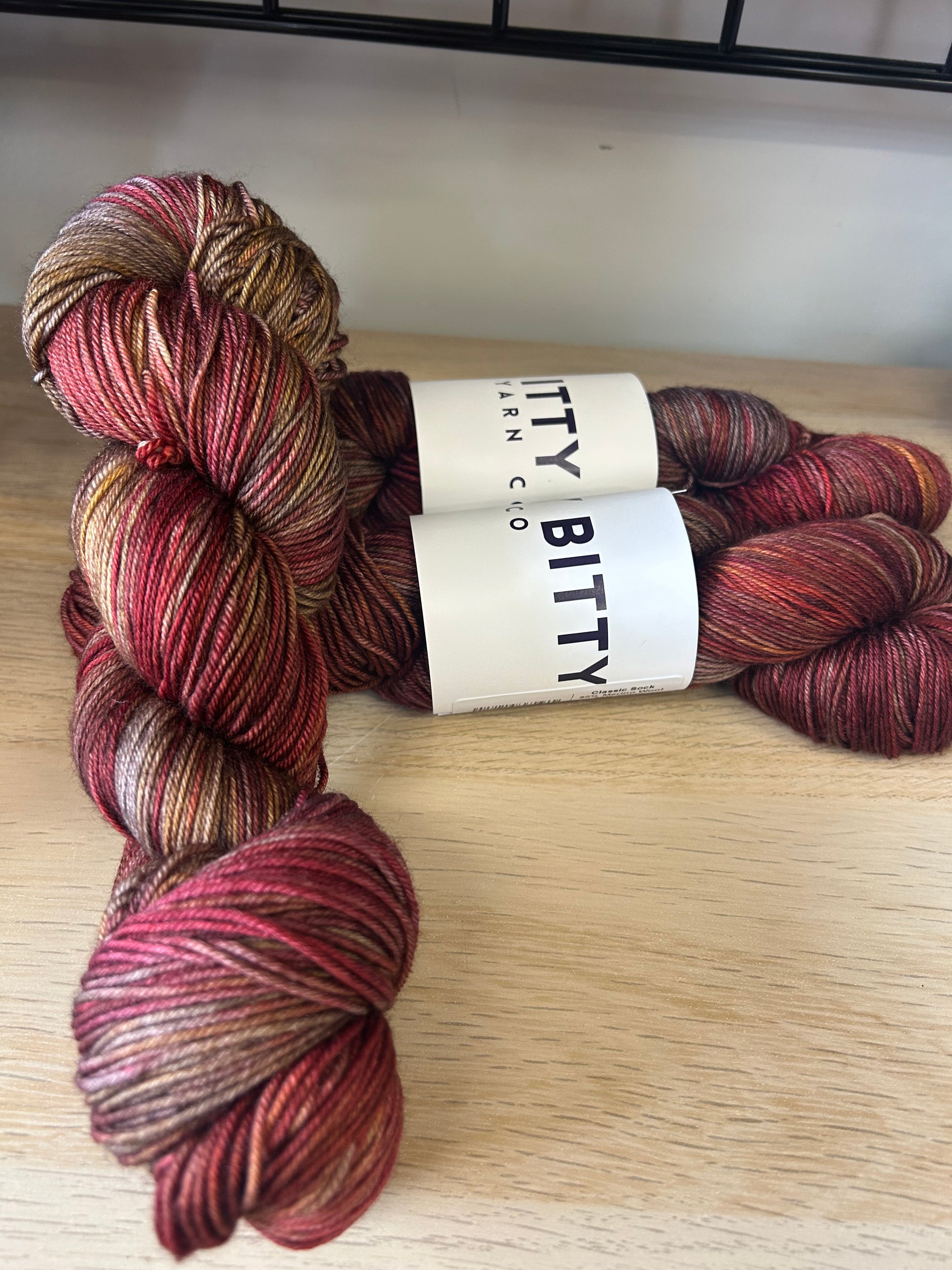 Each skein is 100g / 430yards of 80% Superwash Merino, 20% Nylon