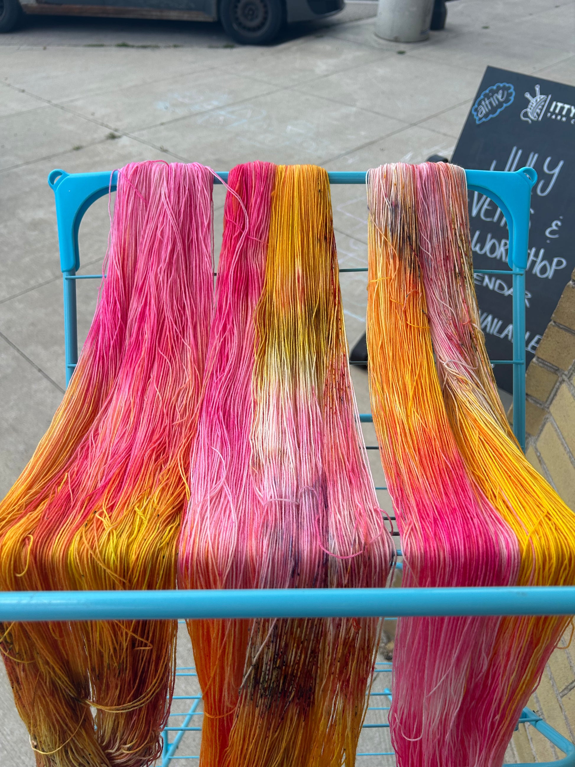 Bold, bright, and unapologetically joyful, Zinnias is a fingering weight yarn that channels the untamed beauty of summer’s showiest bloom. Splashes of hot pink, fiery orange, golden marigold, and petal-soft peach burst across the skein like blossoms in full, sun-soaked glory. Dappled with earthy speckles that echo garden beds and buzzing bees, this colourway is pure floral exuberance. Whether you're stitching up a playful shawl, cheery socks, or a sunlit top, Zinnias adds a burst of warmth and personality to every stitch—no green thumb required.